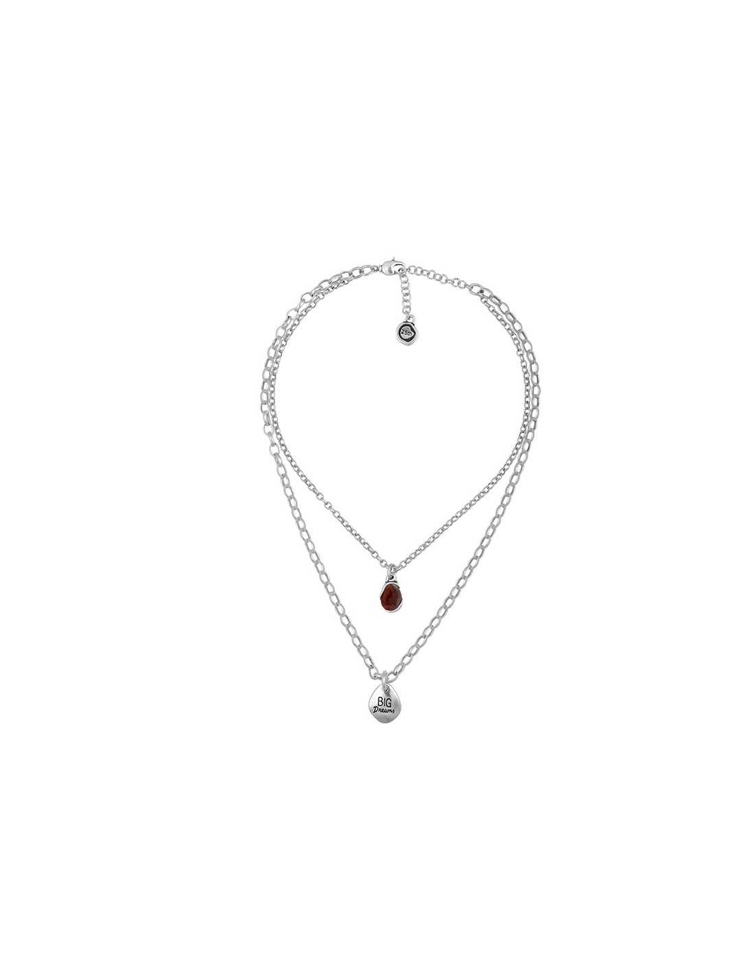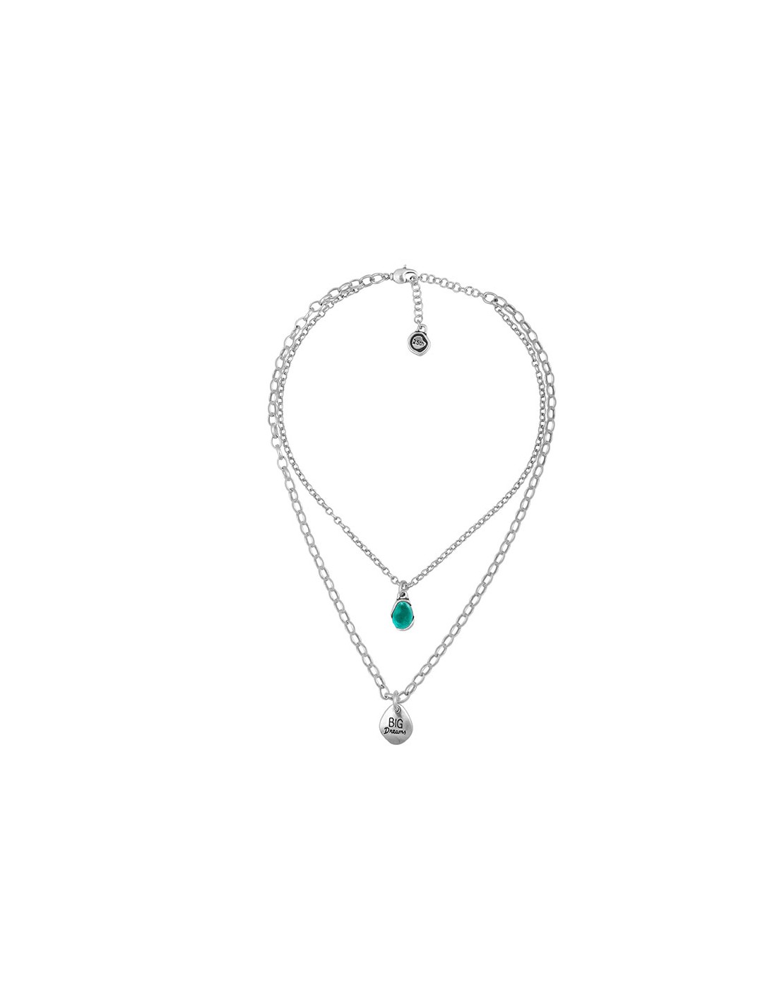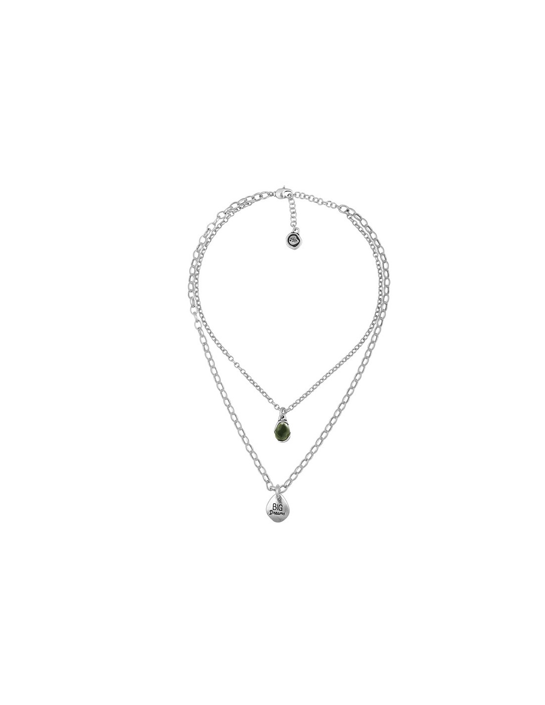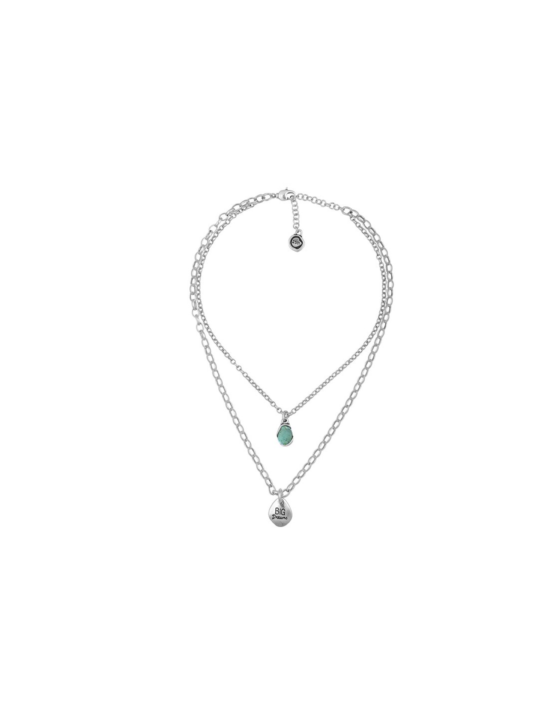 El collar doble Gadea bañado en plata, de la Colección 25th Colors, es una joya perfecta para las amantes de la tendencia layering. Este collar combina dos cadenas delicadas que se entrelazan, creando un aspecto elegante y moderno. Está decorado con un charm grabado con la inscripción "big dreams" y un charm de cristal murano, añadiendo un toque de brillo y encanto. Disponible en 5 colores diferentes, puedes elegir la opción que mejor se adapte a tu estilo y preferencia. Con un cierre de mosquetón seguro, este collar se mantiene en su lugar con confianza. Descubre la belleza y la distinción que ofrece el collar doble Gadea bañado en plata de la Colección 25th Colors, una joya que te permite expresar tu estilo único y tus grandes sueños.