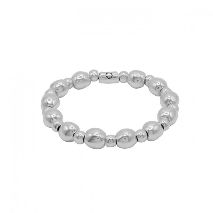 Bracelet Capella, élastique plaqué argent avec des sphères de deux tailles, créé pour s'adapter à votre poignet. Ses formes et ses proportions rappellent l'harmonie des corps célestes. Disponible en deux tailles, idéal pour combiner et ajouter une touche cosmique à votre style.