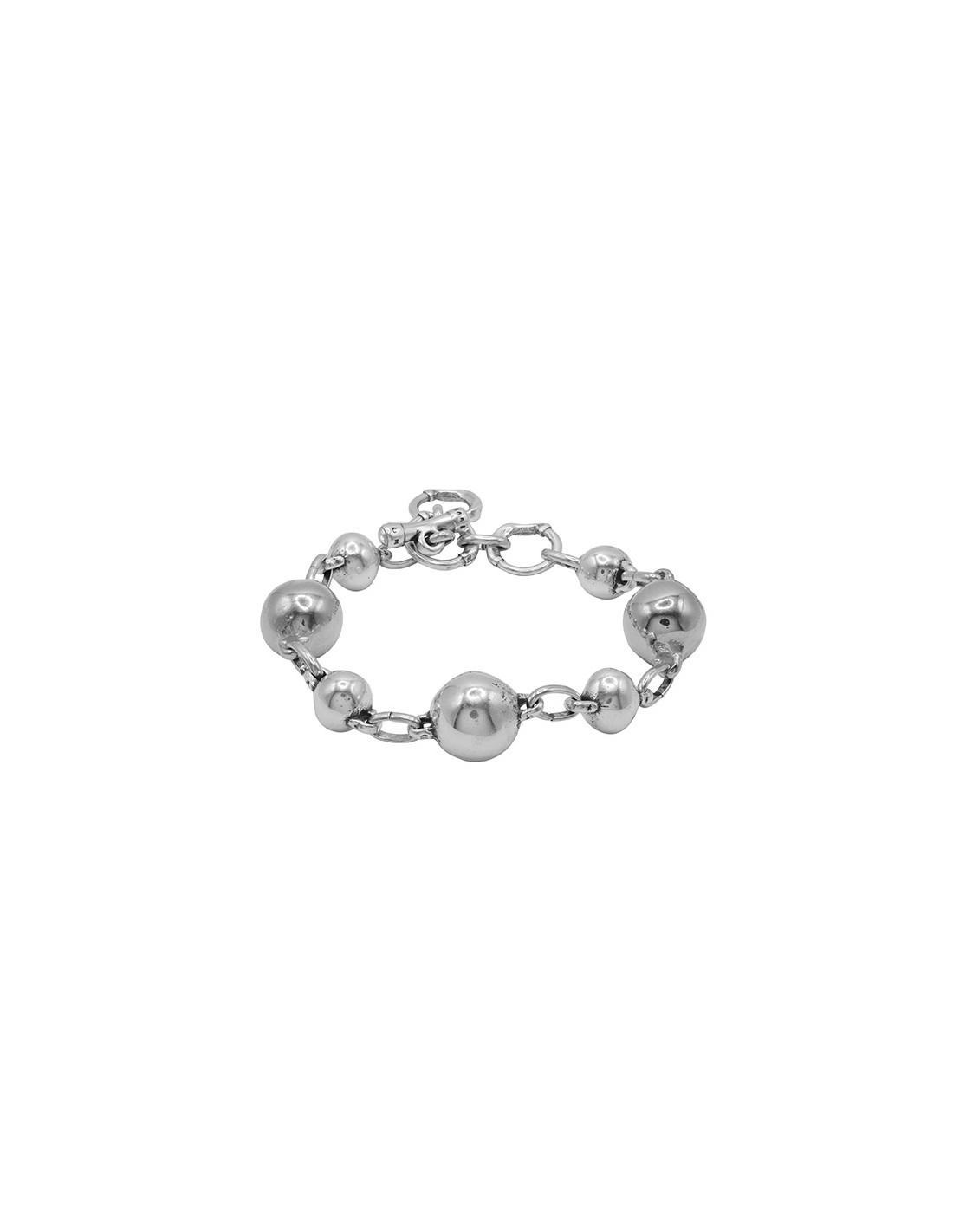 Le bracelet Perseidas plaqué argent est composé de sphères de deux tailles différentes qui rappellent l'éclat fugace des étoiles. Réglable de 17 à 21 cm grâce à son fermoir à mousqueton, c'est un bijou éclatant et élégant qui apporte de l'éclat à votre style.