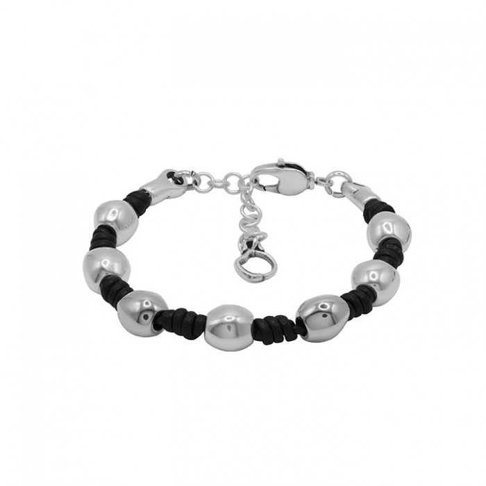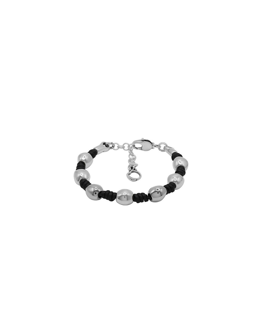 Le bracelet Lira en cuir est orné de petites sphères plaquées argent, entrecoupées de nœuds qui apportent de la texture et de jolis détails au design. Son fermoir à mousqueton permet de le régler de 17 à 21 cm, ce qui en fait un accessoire polyvalent et contemporain, parfait pour tous vos looks.
