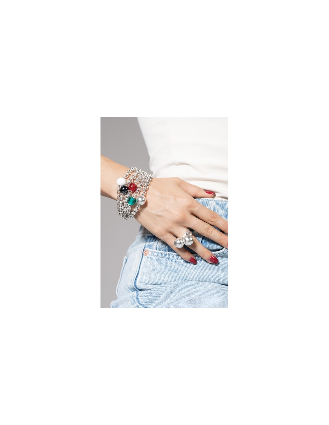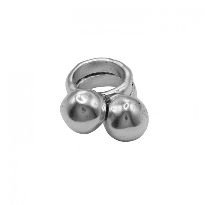 La bague Spherik est composée de deux anneaux, chacun surmonté d'une sphère. Son design permet de porter les anneaux séparément ou emboîtés l'un dans l'autre, créant ainsi un effet d'union élégant et polyvalent. Plaquée argent et disponible en quatre tailles, cette bague imposante apporte caractère et style contemporain à tous vos looks.