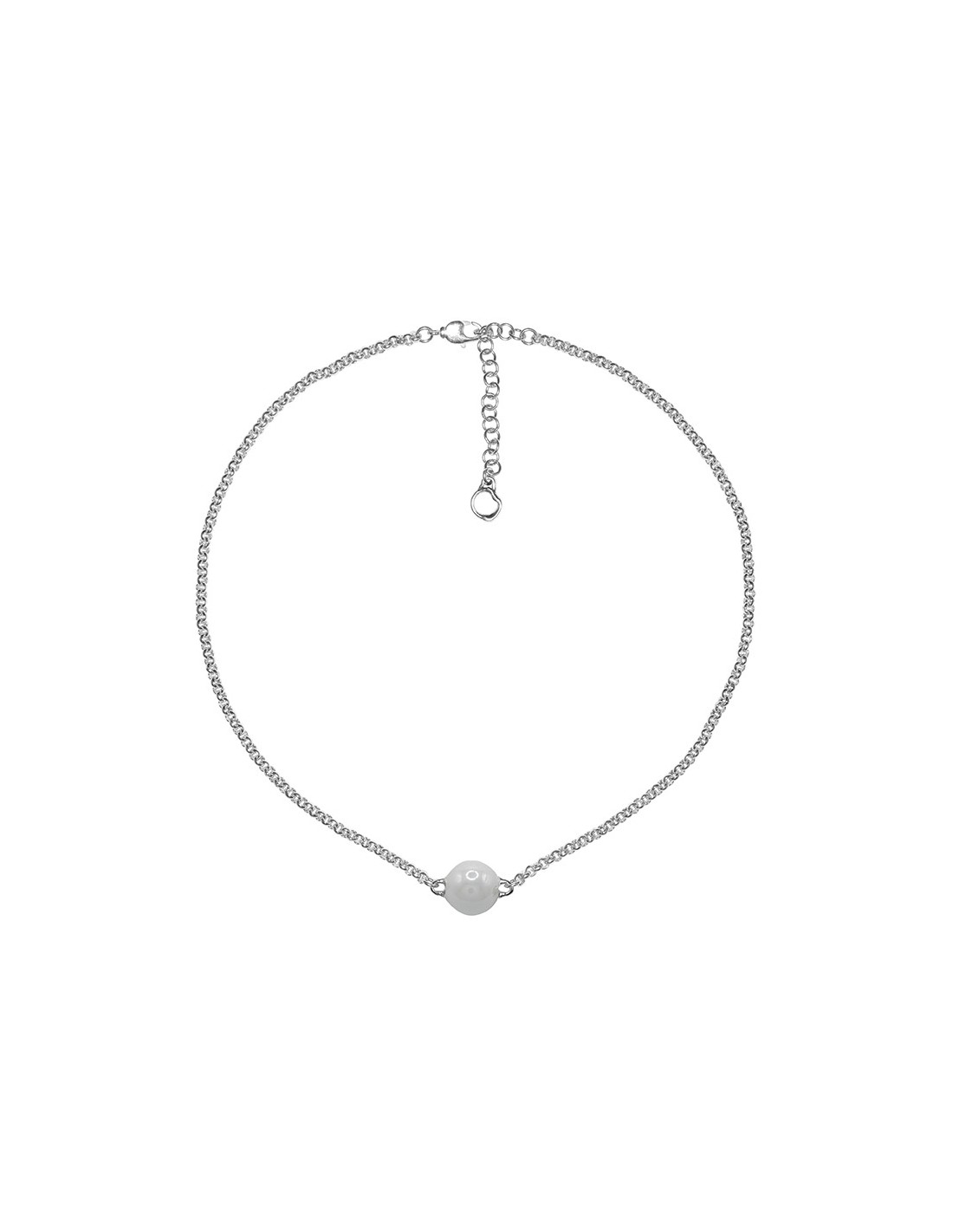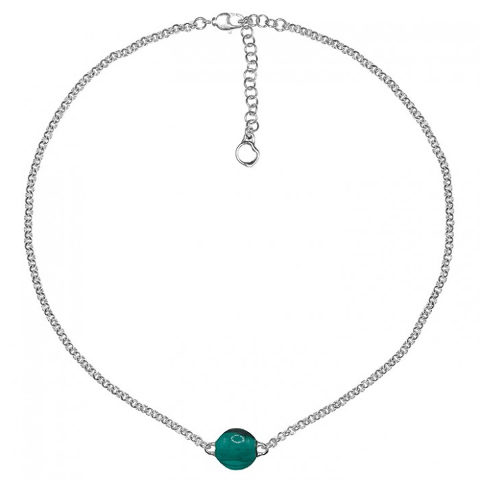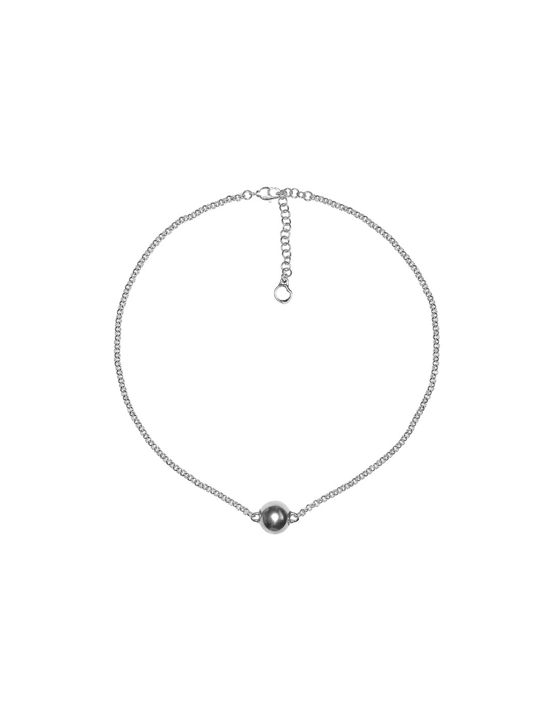 Le collier Calixto combine une fine chaîne plaquée argent avec une sphère centrale en verre de Murano ou en argent plaqué, un design élégant et polyvalent.