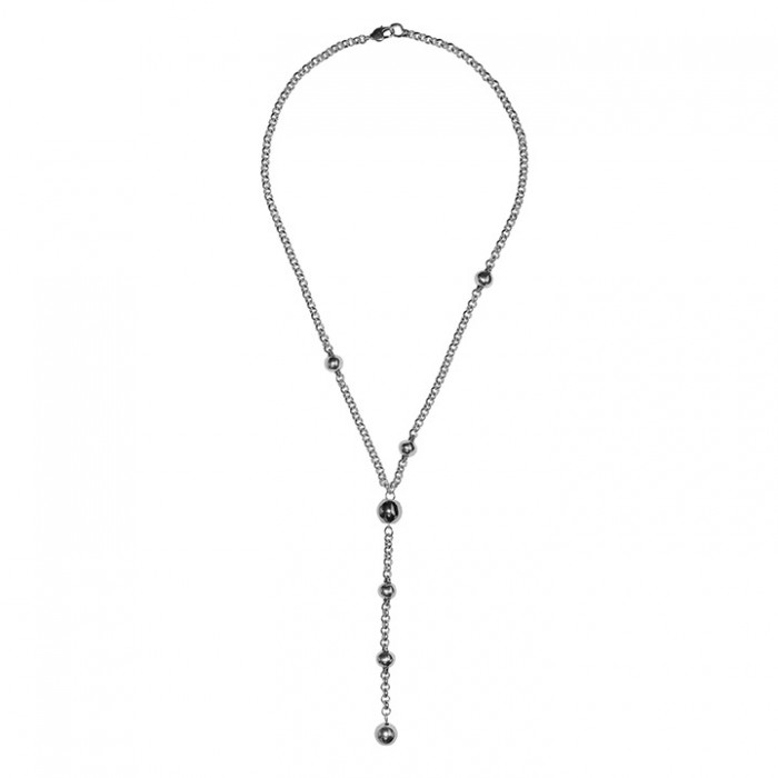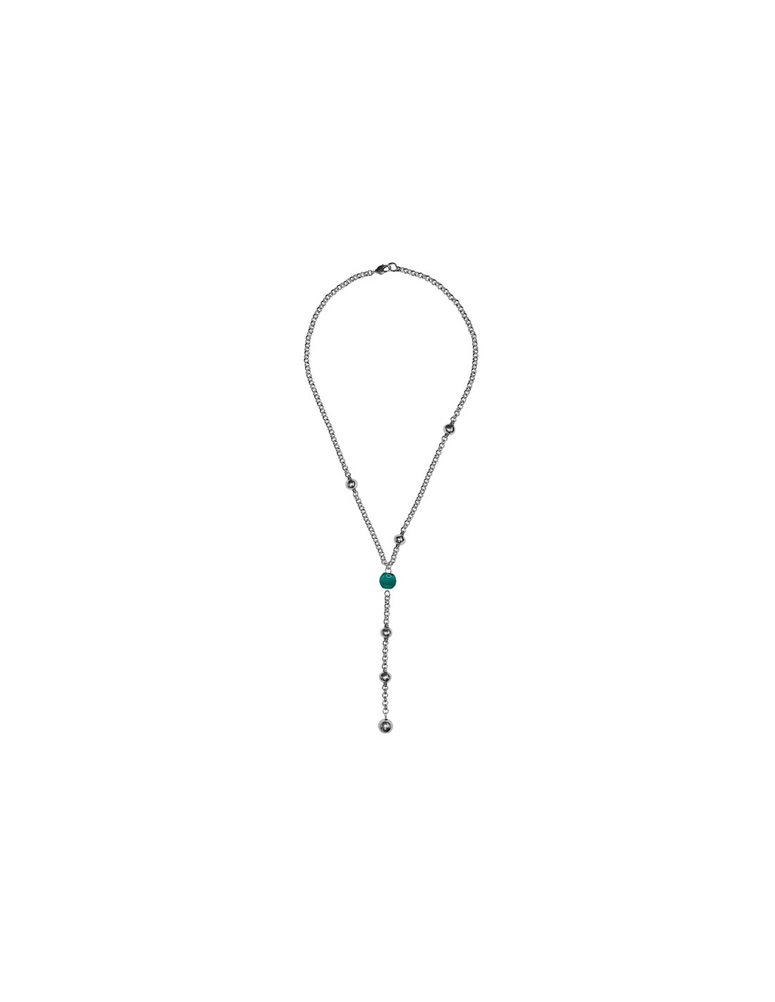Le collier Kermes est un collier long de style cravate avec une chaîne à maillons plaquée argent. Il combine des motifs sphériques en métal plaqué argent ou en verre de Murano, disponibles en cinq couleurs. Avec son fermoir mousqueton et sa longueur de 80cm, c'est un collier polyvalent et sophistiqué qui ajoute du dynamisme et un style contemporain à tous vos looks.