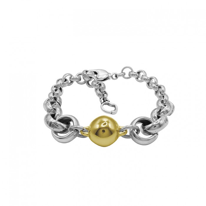 Bracelet Maia Or avec chaîne à maillons dégradés plaquée argent, qui apporte dynamisme et modernité au design. Au centre, une sphère plaquée or devient le point focal du bijou, apportant contraste et sophistication. Son fermoir mousqueton permet de le régler confortablement de 17 à 21 cm. Une pièce polyvalente et moderne, parfaite pour compléter votre look avec une touche distinctive.