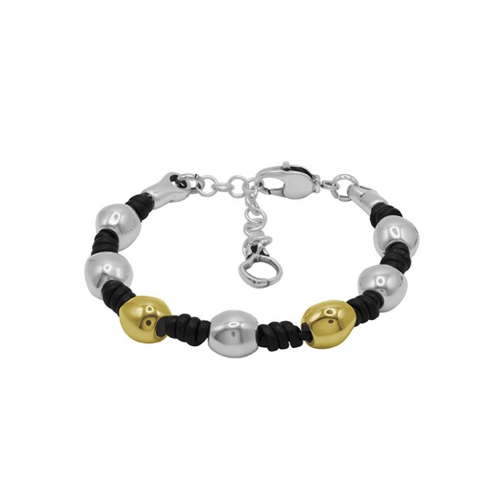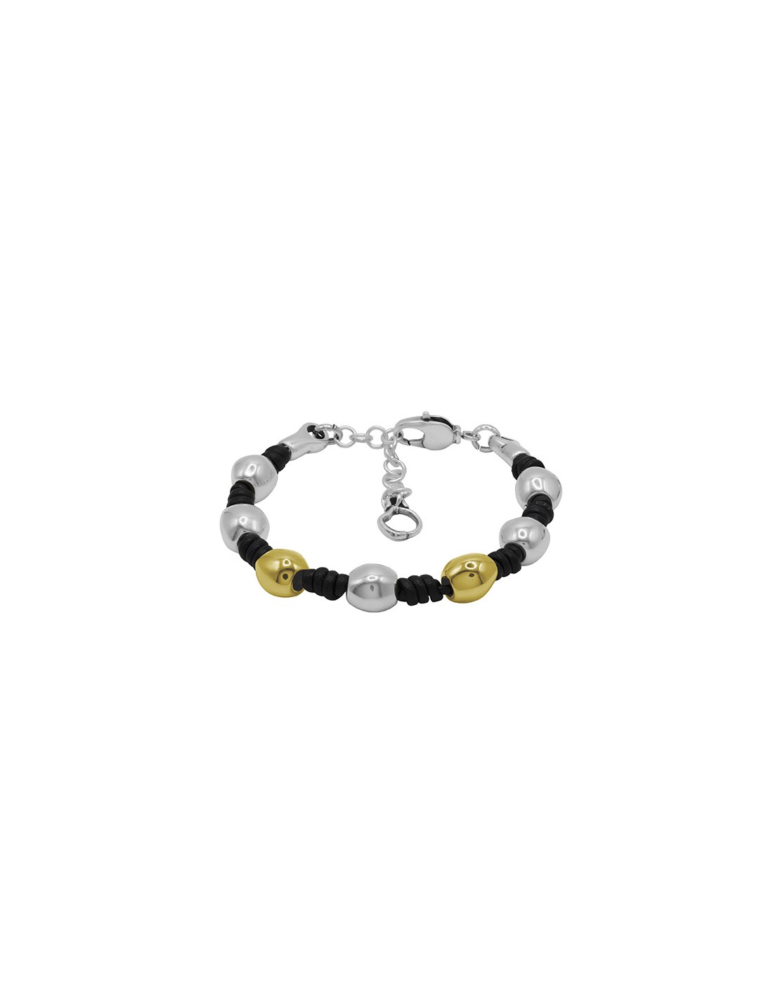 Le bracelet Lira Or est composé de lanières de cuir et orné de petites sphères plaquées argent et or, entrecoupées de nœuds qui apportent texture et caractère au design. Son fermoir à mousqueton permet de le régler confortablement de 17 à 21 cm, s'adaptant ainsi à différentes tailles de poignet. Un bijou contemporain et polyvalent, parfait à porter seul ou à associer à d'autres bracelets, apportant une touche sophistiquée à votre tenue.