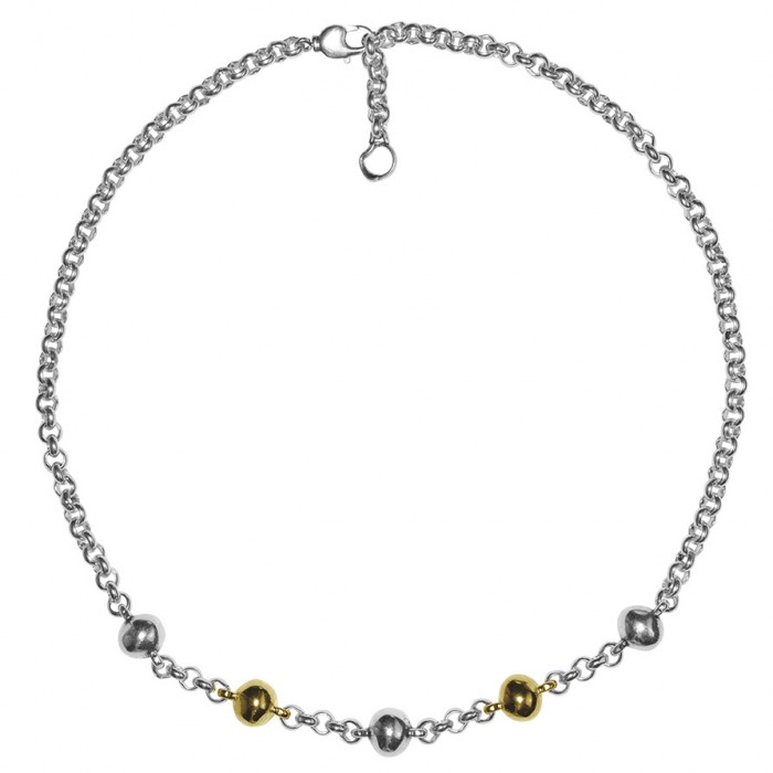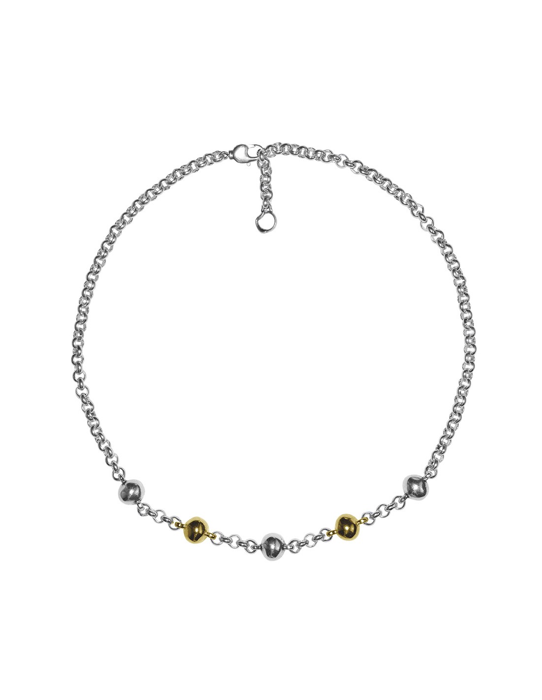 Collier Biela Or avec chaîne en argent plaqué et sphères plaquées argent et or, élégant et polyvalent.