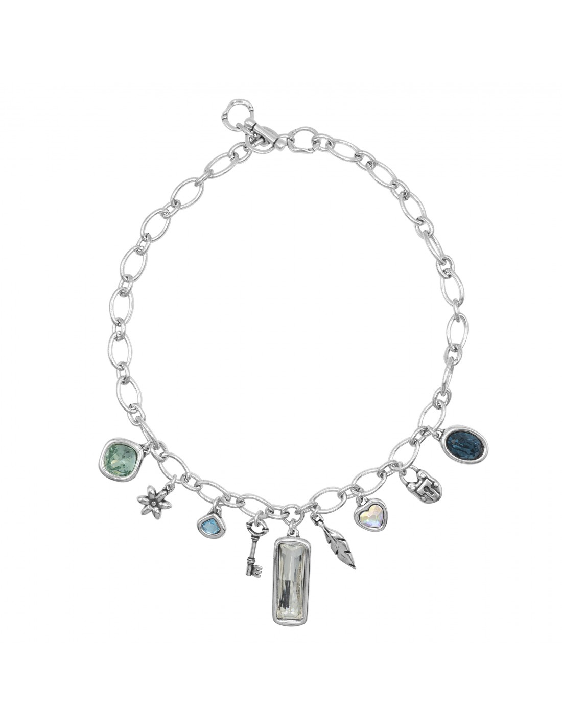 Colección Collage Bracelet Collage CICLÓN 1998 257102 70,08 € Le bracelet Collage associe des charms plaqués argent à des pierres facettées bicolores pour une brillance dynamique. Fait main à Madrid, ajustable de 17 à 21 cm et doté d’un fermoir en T, il offre mouvement et caractère.