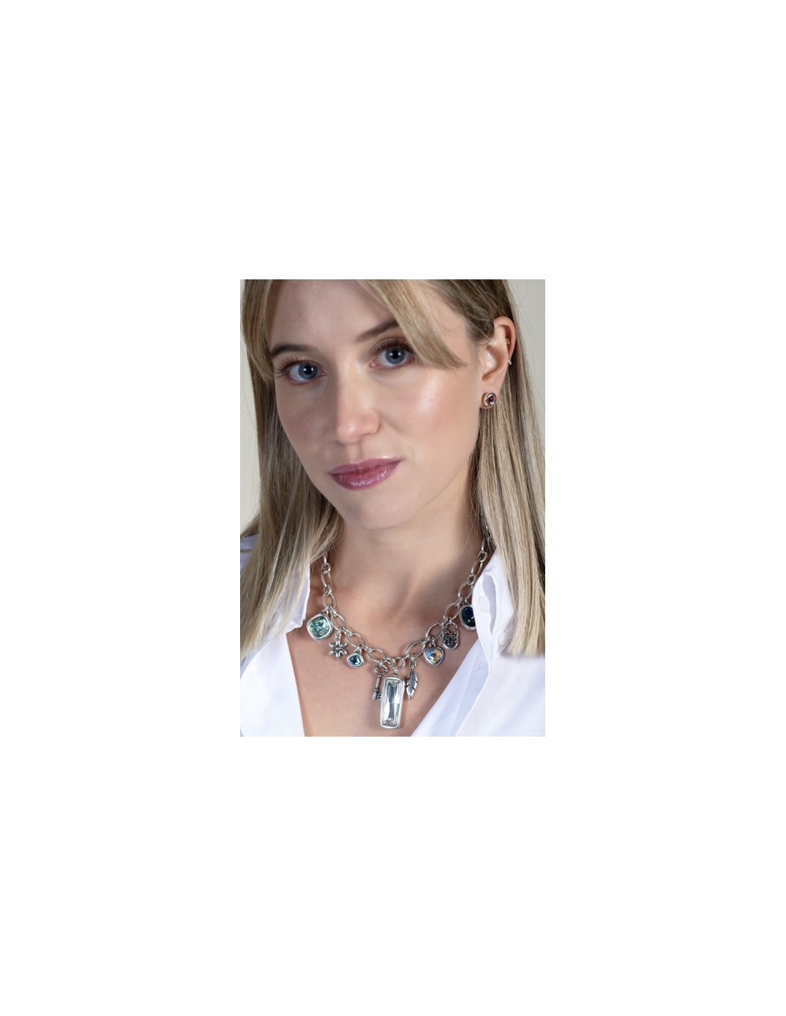 Colección Collage Bracelet Diverso CICLÓN 1998 257100 70,08 € Le bracelet Diverso, plaqué argent et réalisé artisanalement à Madrid, combine des motifs de 2 cm avec un cristal facetté bicolore. Ajustable de 17 à 21 cm et doté d’un fermoir en T, il apporte lumière et style au quotidien.