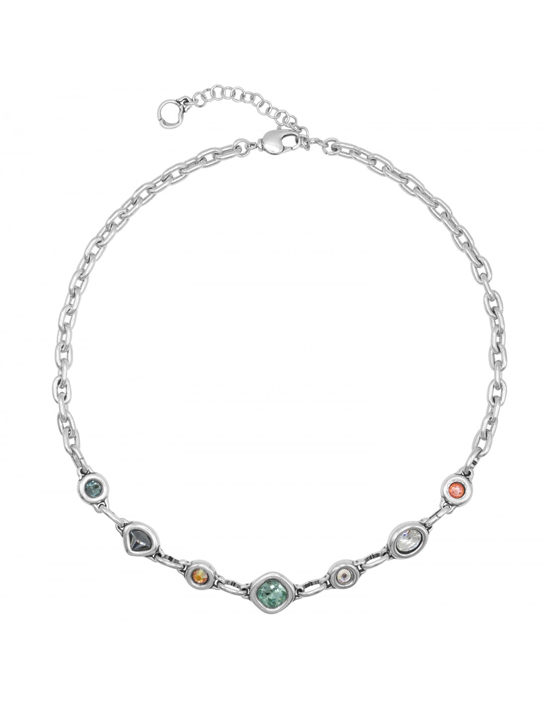 Collier Mosaico se distingue par son design baigné d’argent, où différents motifs se répartissent le long de la chaîne pour créer un rythme visuel élégant et équilibré. Les pierres facettées, disponibles en deux tonalités, apportent de légers éclats qui illuminent l’ensemble. Fabriqué artisanalement à Madrid, il offre une longueur réglable de 40 à 45 cm et un fermoir en T qui ajoute du caractère. Un bijou qui invite à l’imaginer comme une touche spéciale pour accompagner vos moments quotidiens ou comme un cadeau significatif.
