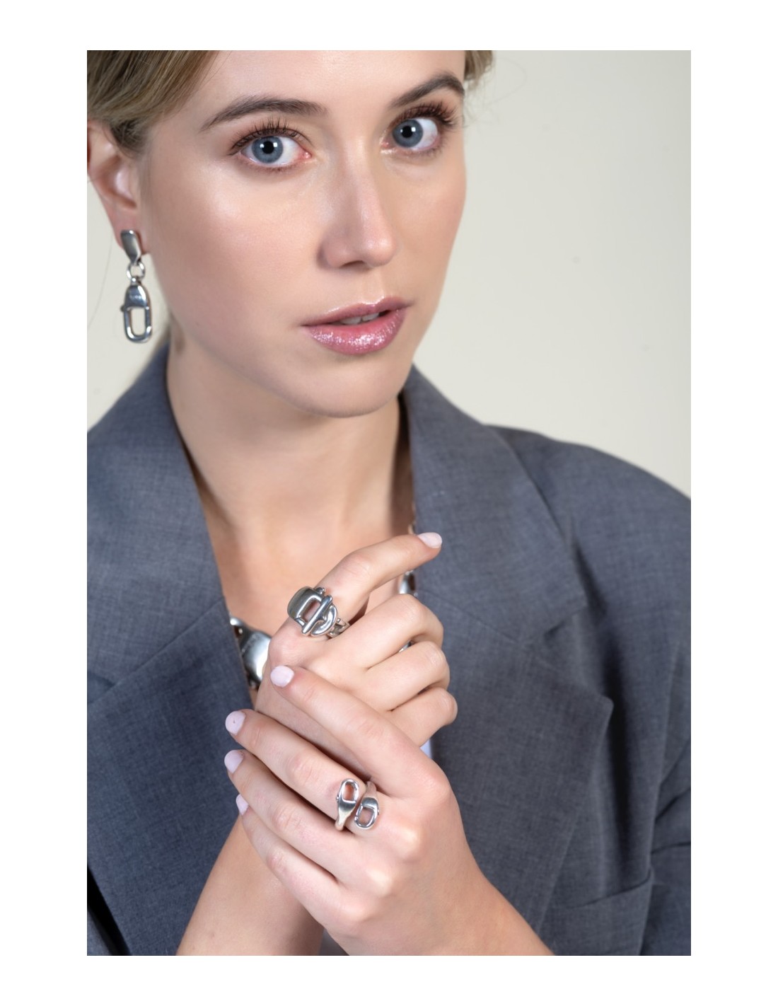 Se distingue par son design à deux mousquetons croisés, une forme sculpturale qui apporte caractère et force visuelle. Sa finition en plaqué argent reflète la lumière avec un éclat sobre et élégant. Fabriqué artisanalement à Madrid, il transmet une esthétique urbaine et contemporaine. Disponible en deux tailles réglables, il s’adapte confortablement et devient un geste personnel, idéal à porter au quotidien ou à offrir avec intention.
