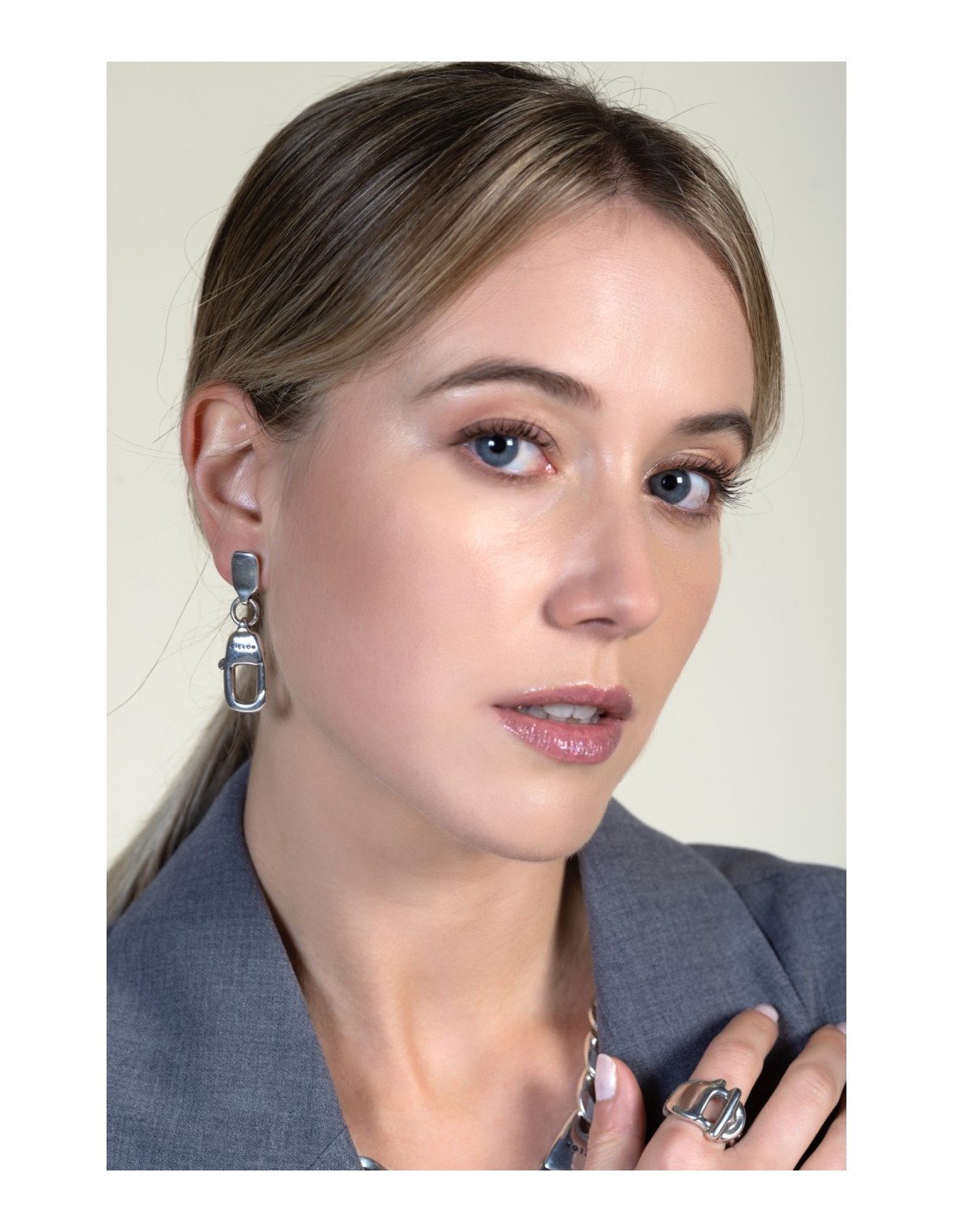 Ils réinterprètent le motif mousqueton en version pendante, apportant mouvement et légèreté. Le plaqué argent met en valeur son éclat subtil et accompagne chaque geste de reflets délicats. Fabriqués artisanalement à Madrid, ils allient design contemporain et esprit urbain. Le fermoir à pression assure une fixation confortable et sécurisée. Un bijou pensé pour exprimer le caractère avec naturel.