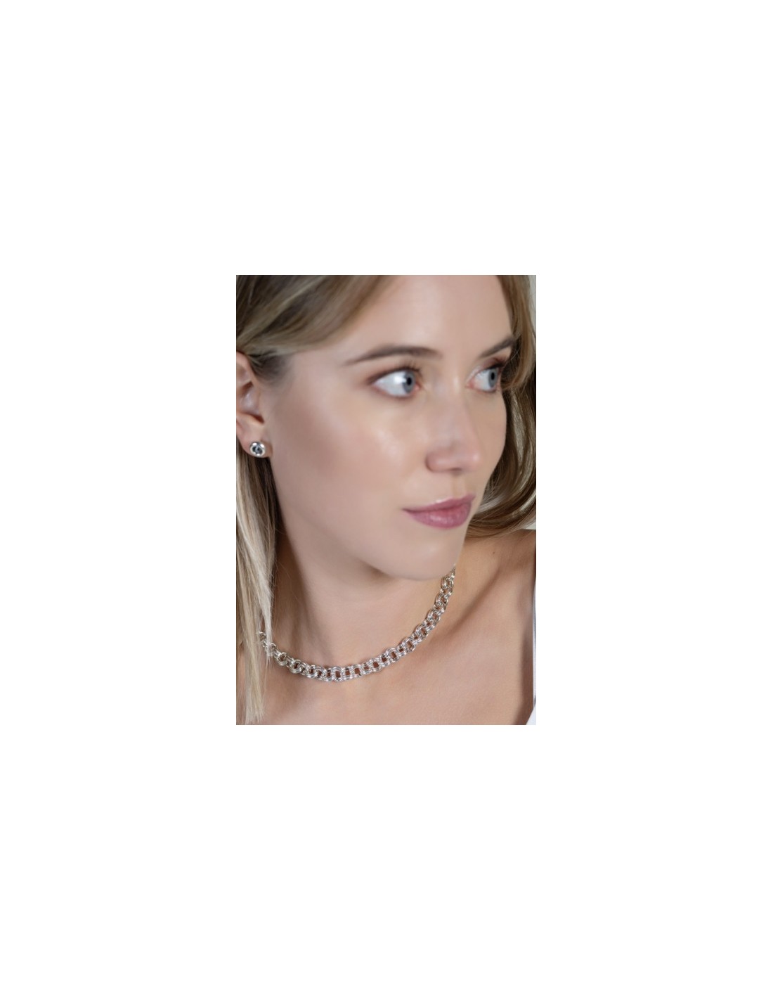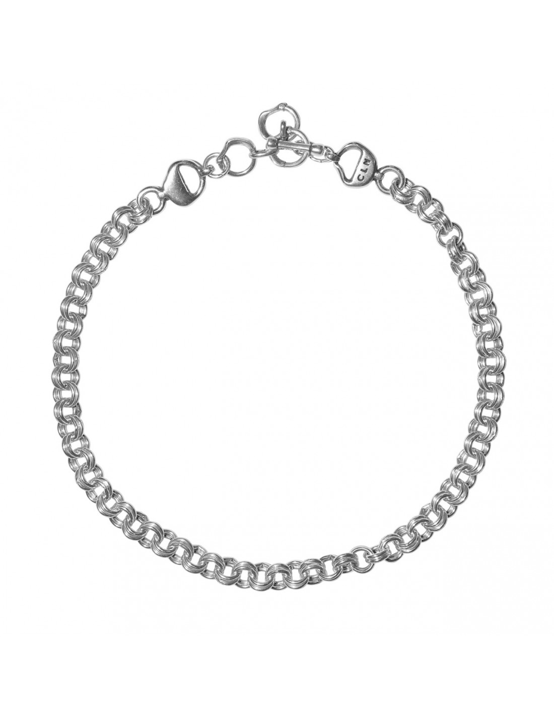 Un collier court plaqué argent composé d’une double chaîne qui souligne délicatement le cou avec éclat naturel. Le motif circulaire apporte équilibre visuel et touche contemporaine, tandis que le fermoir en T allie confort et style. Fabriqué artisanalement à Madrid, il se distingue par la finesse de ses finitions et sa légèreté. Ajustable de 40 à 45 cm, il complète élégamment toutes les tenues et devient un cadeau ou un accessoire à porter en toute confiance.